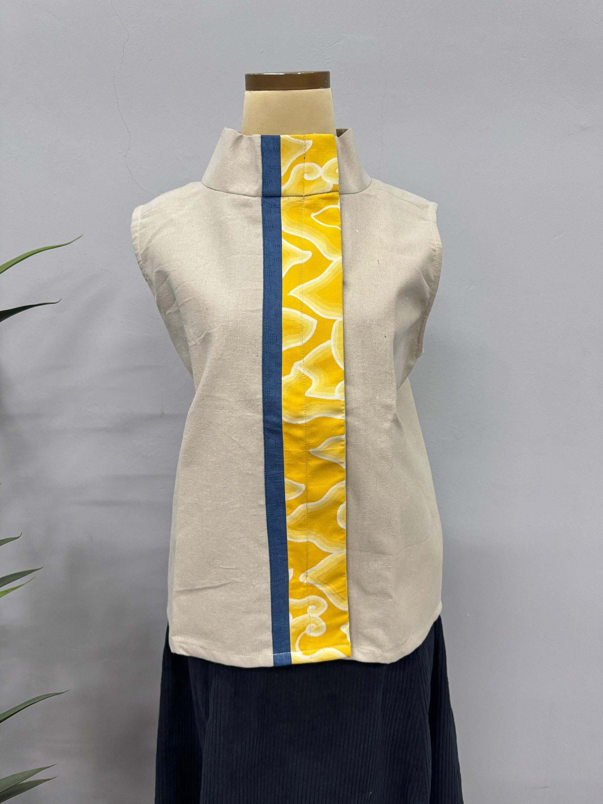 Arianna is one of our favorite Outerwear Collections. Arianna is a fun casual zipper vest in fuschia fabric and pops of color on the hem. and accented on the front with batik or woven motifs.
