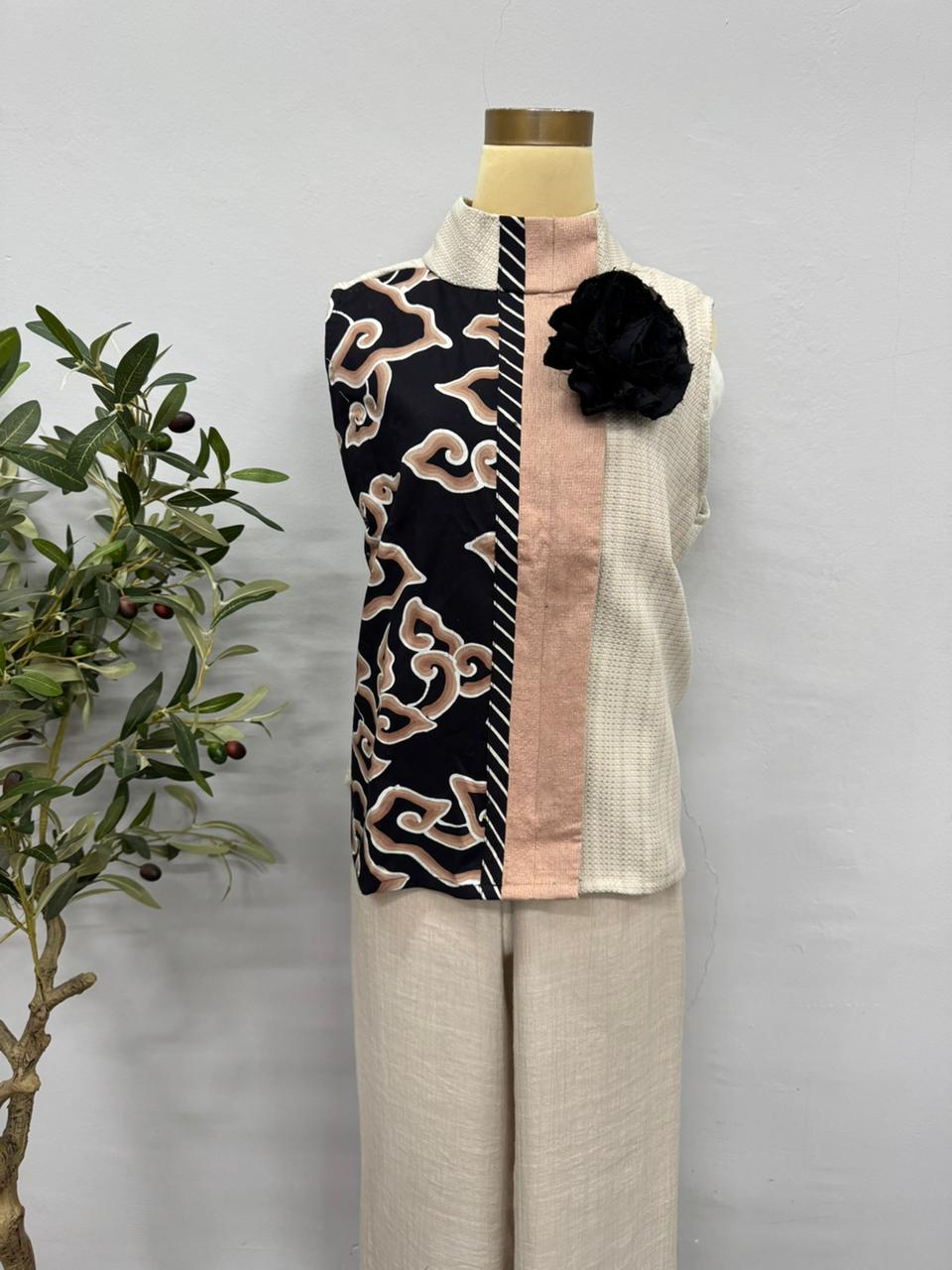 XL / Beige wool with black megamendung batik with beige tenun doby and black stripes batikARN03XL