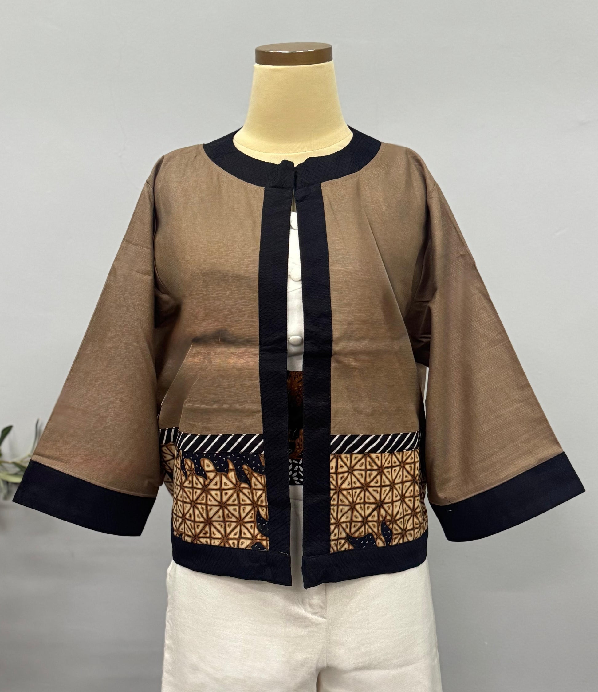 Ayala is one of our outerwears collection. Ayala is a blazer with 7/8- full sleeve length. It is suitable to be worn with anything such a dress, pants or skirt. You can wear it over your plain color top. It can also goes well with sarong skirt and traditional kain for more ethnic and autenthic look.