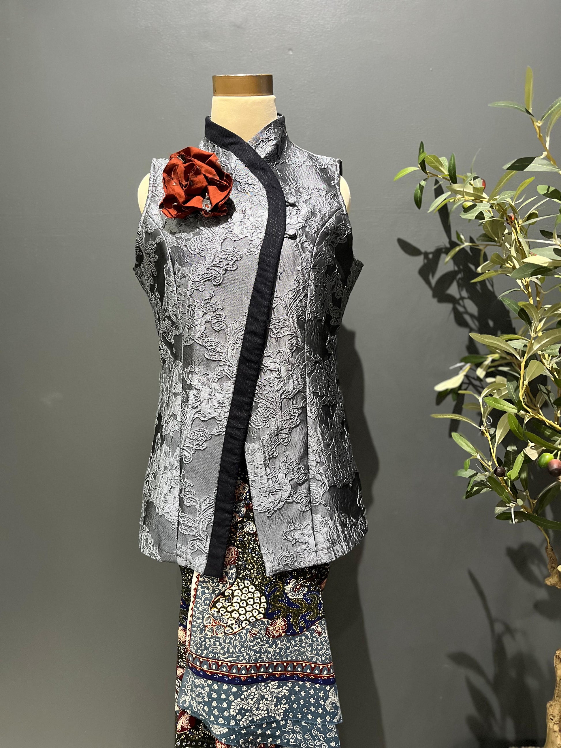 L (FS) / Grey jaguard flower motive with brown tenun doby accentBES010L