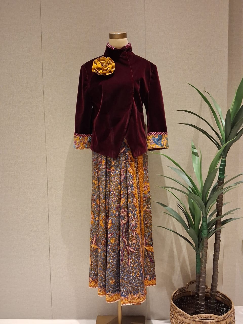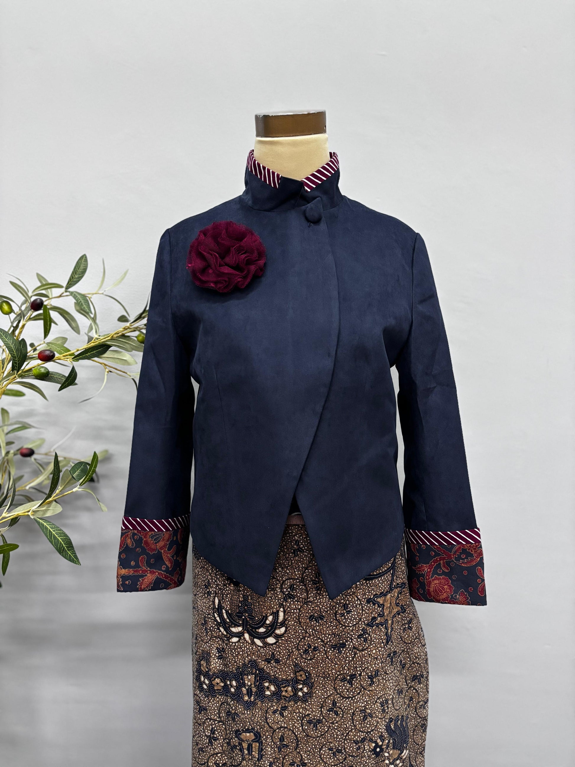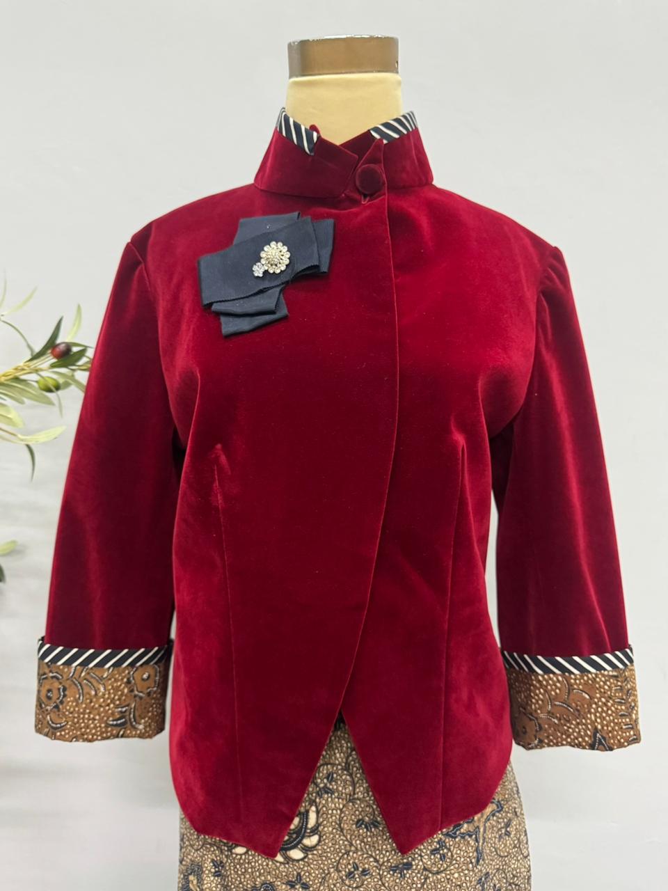 S / Maroon velvet with brown sogan classic batik and navy batik stripes accentAST11S