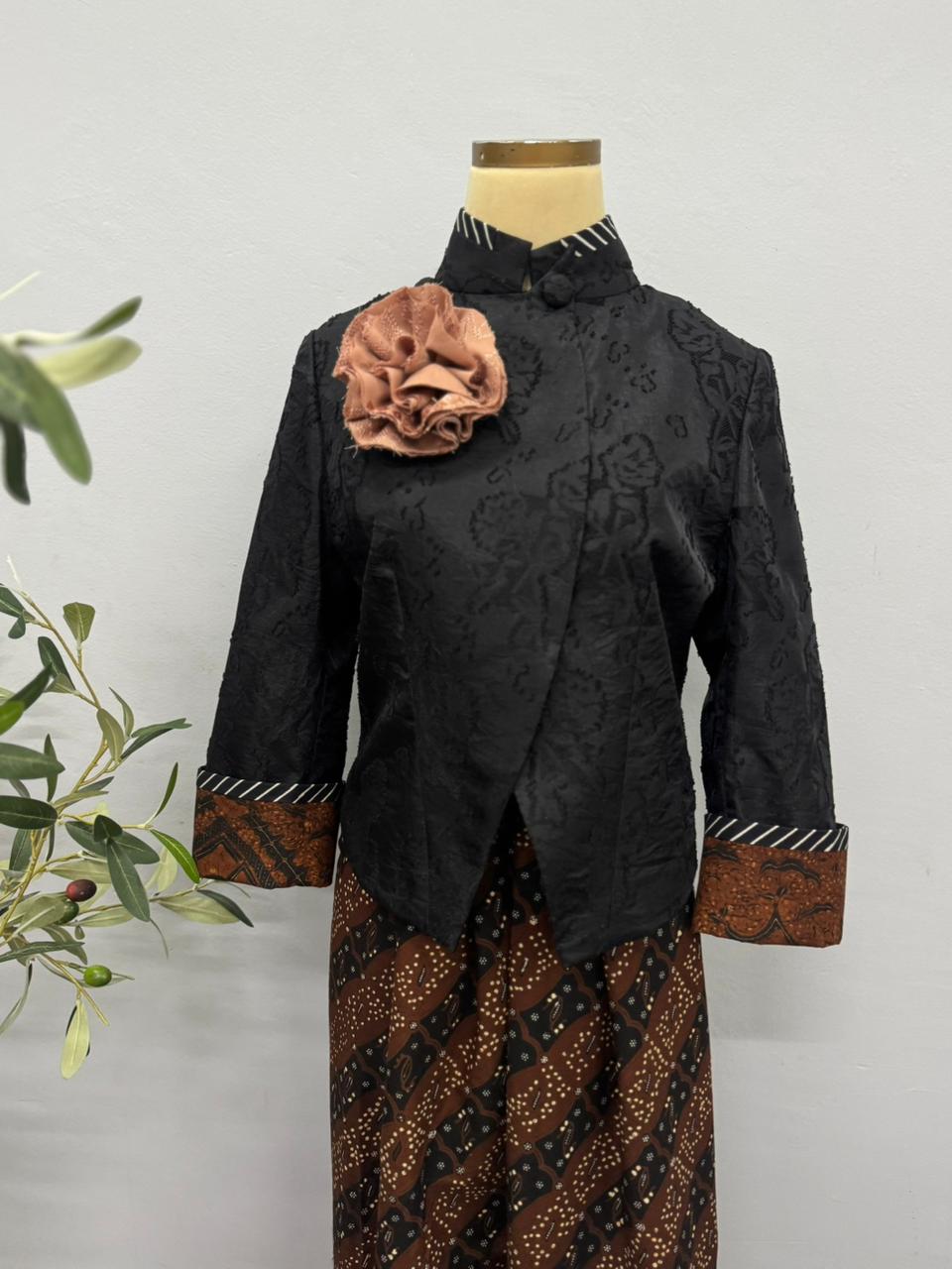 L / Black flower uragiri texture with brown sogan classic batik and black stripes batik accentAST06L