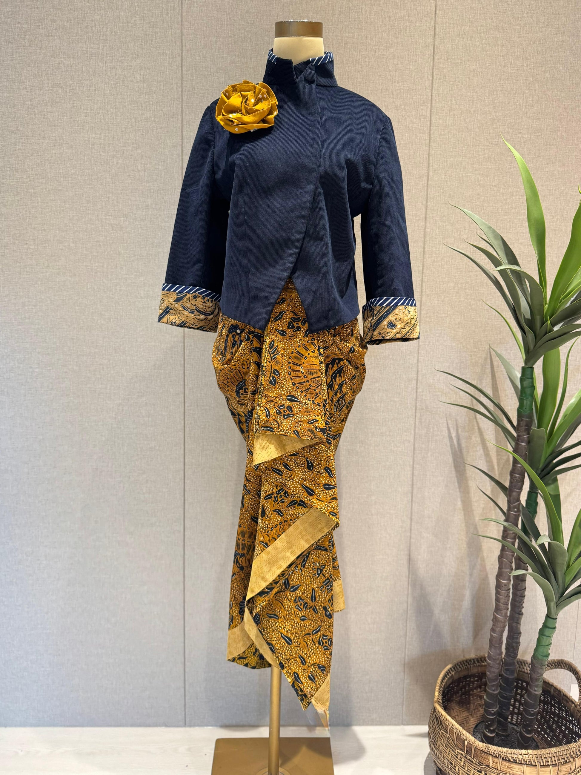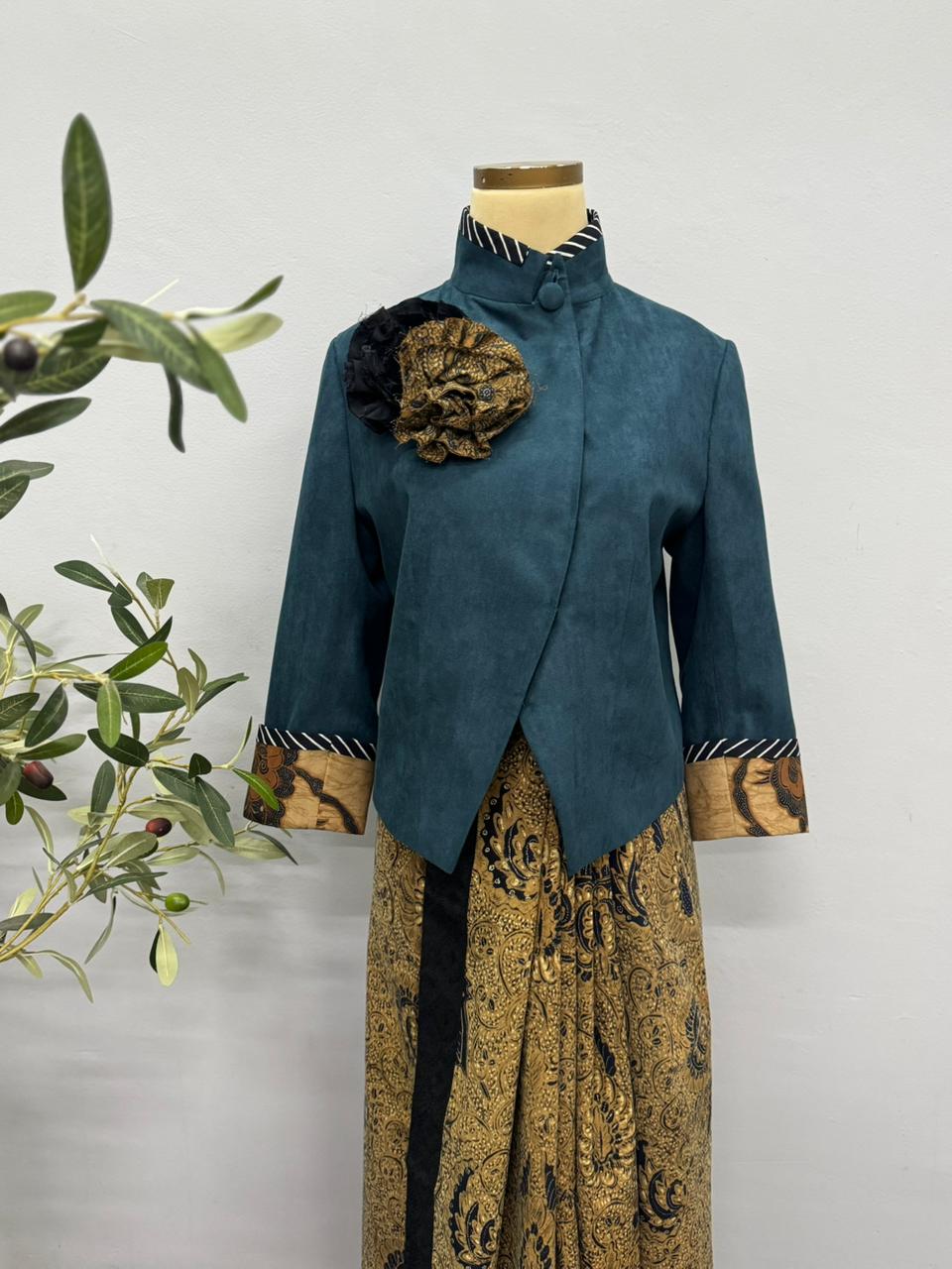 S / Gold suede flowers with teal tenun dobby and rice batik accentAST89S