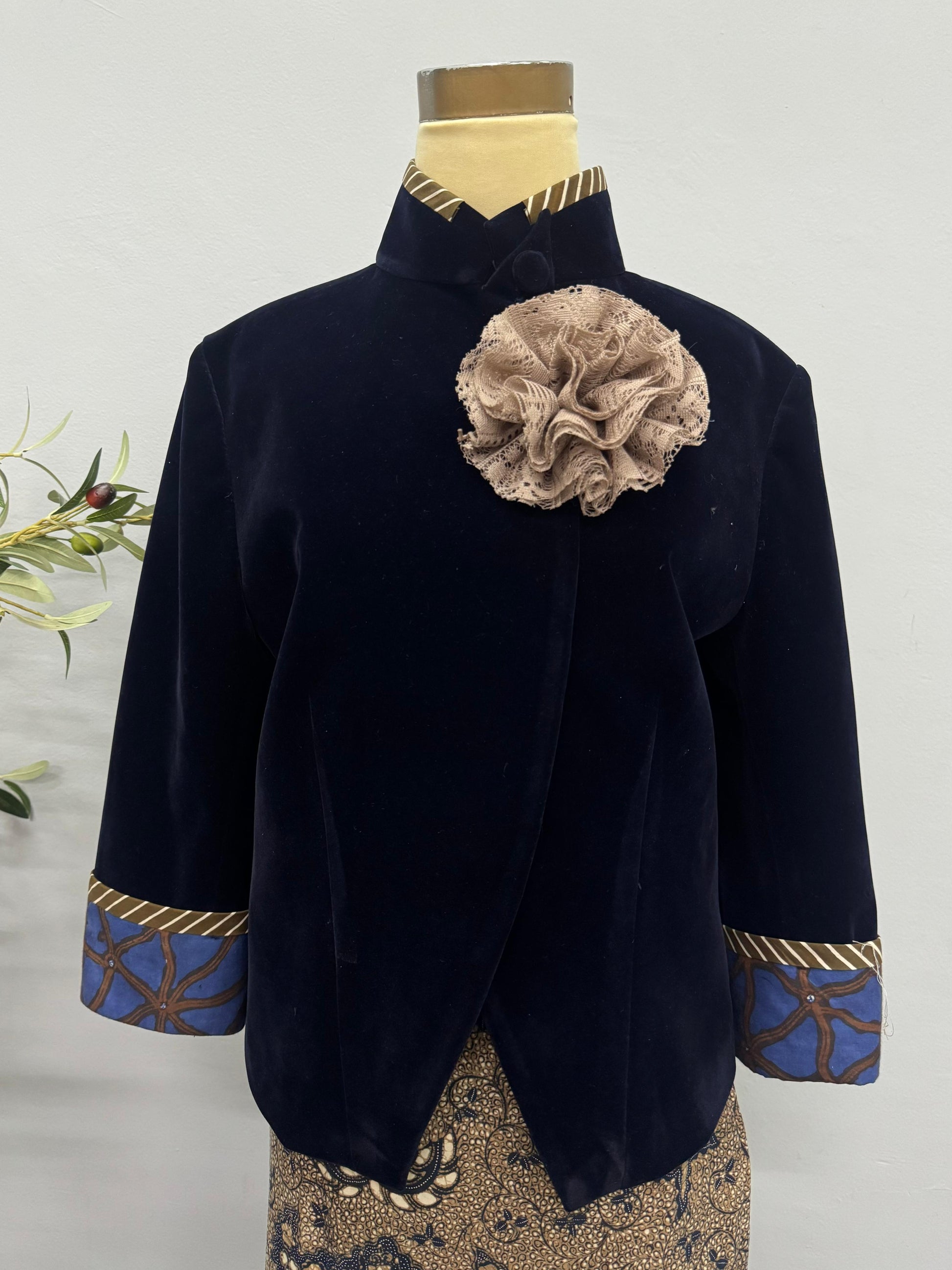 M / Navy velvet with brown and navy sogan classic batik and brown batik stripes accentAST10M
