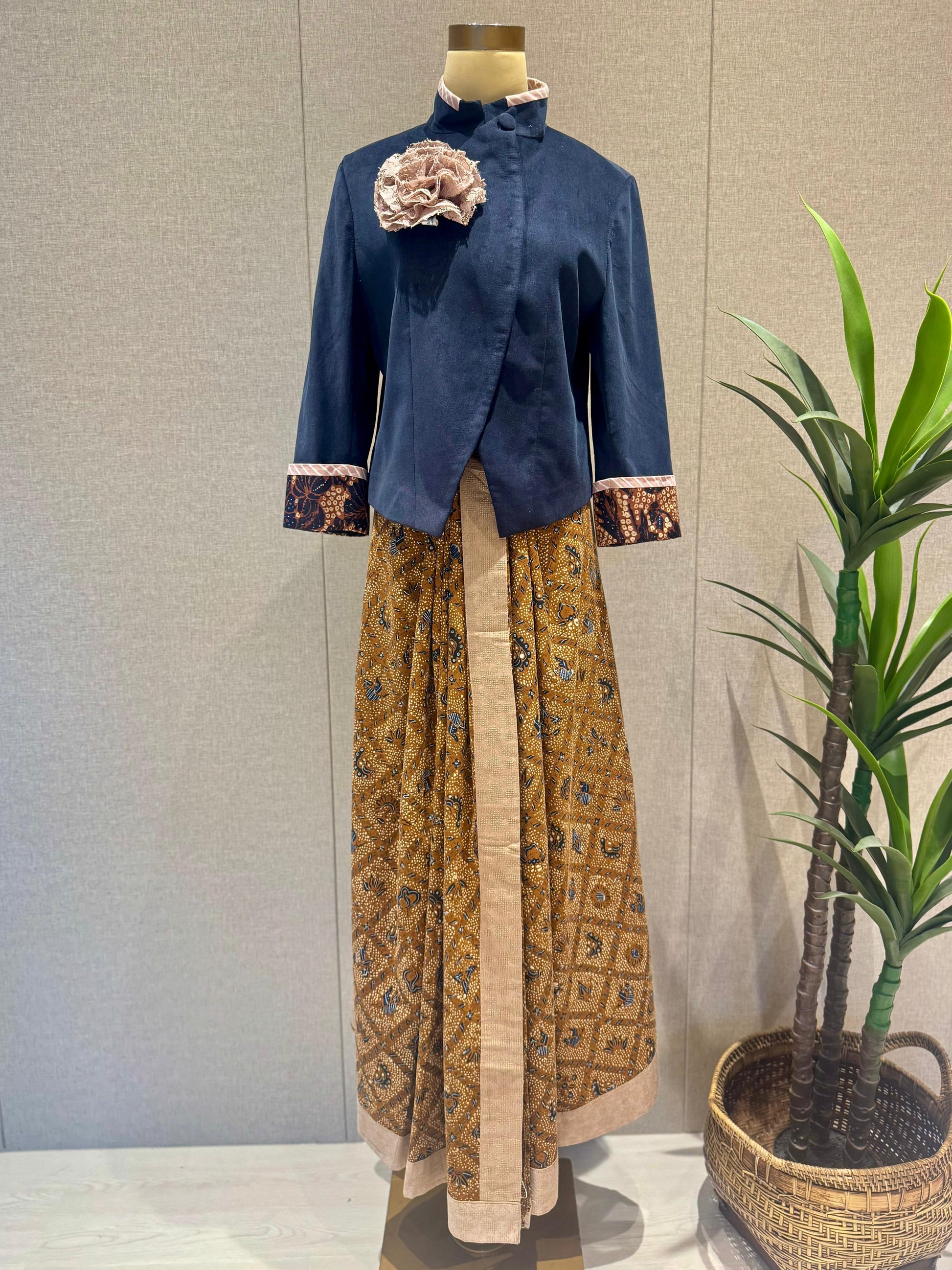 S / Black flower uragiri texture with brown sogan classic batik and black stripes batik accentAST06S