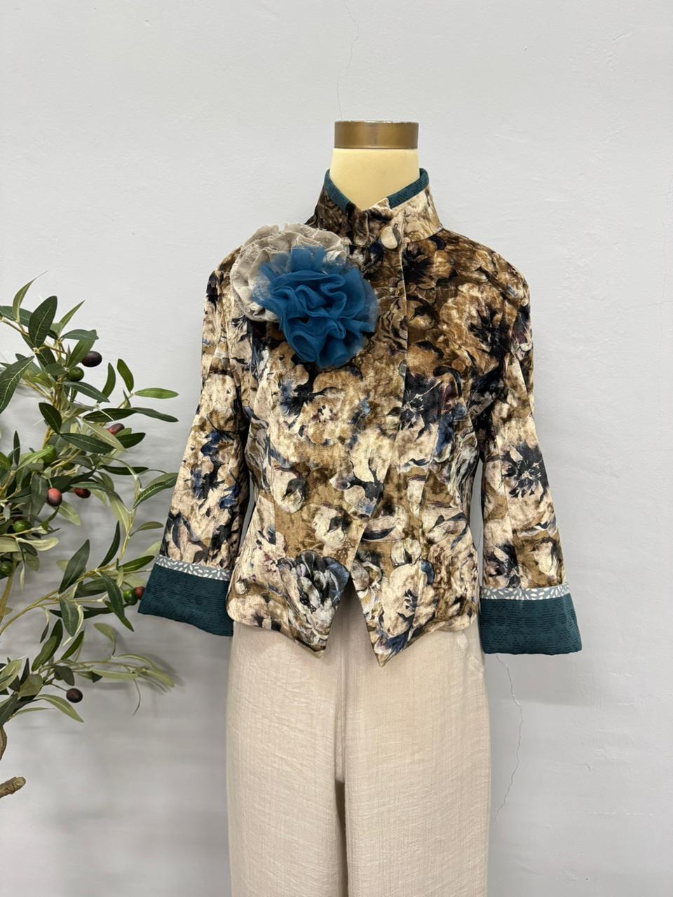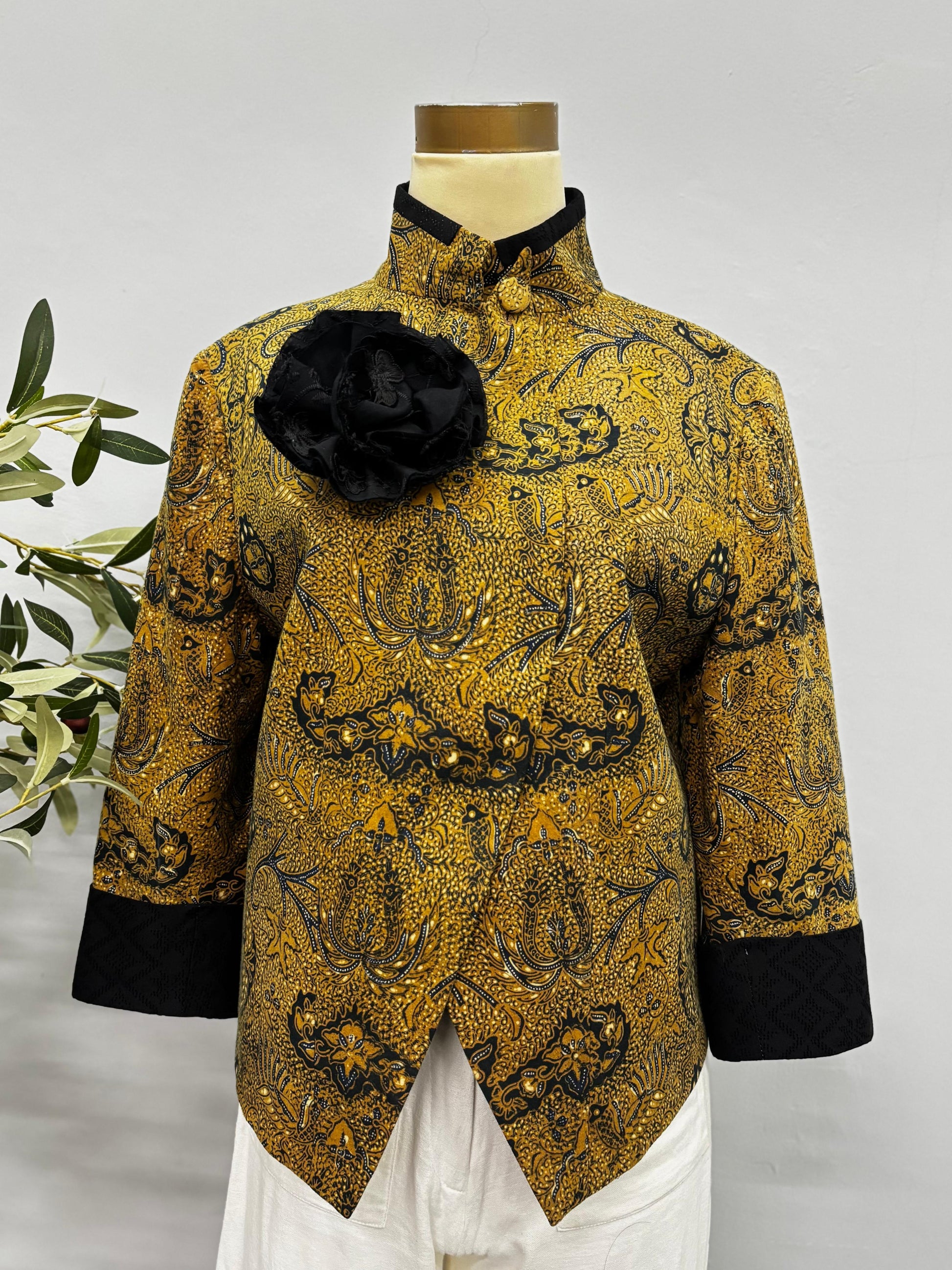 S / Gold suede flowers with teal tenun dobby and rice batik accentAST89S