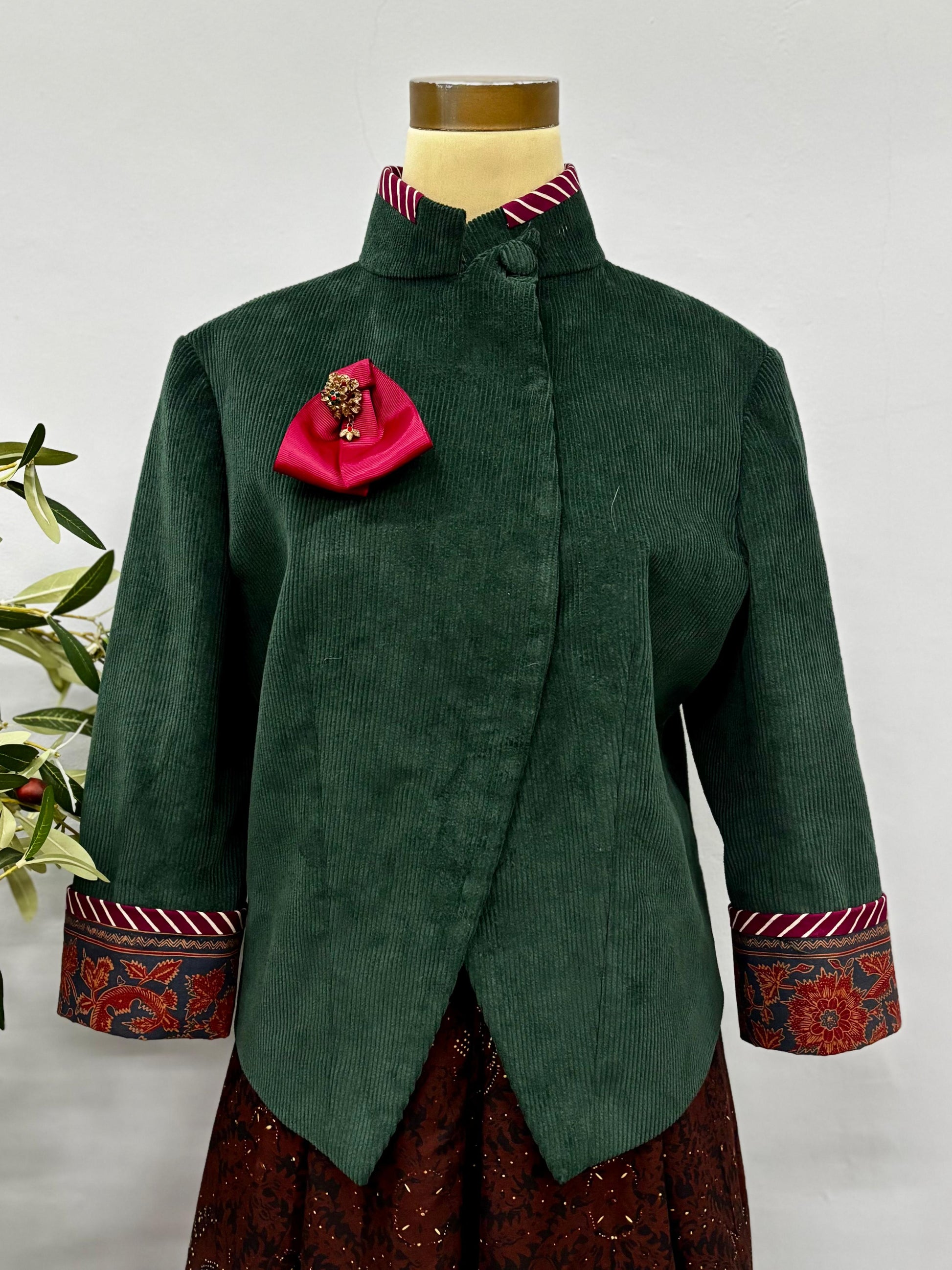 M / Green corduroy with maroon classic batik and maroon stripes batik accentAST90M
