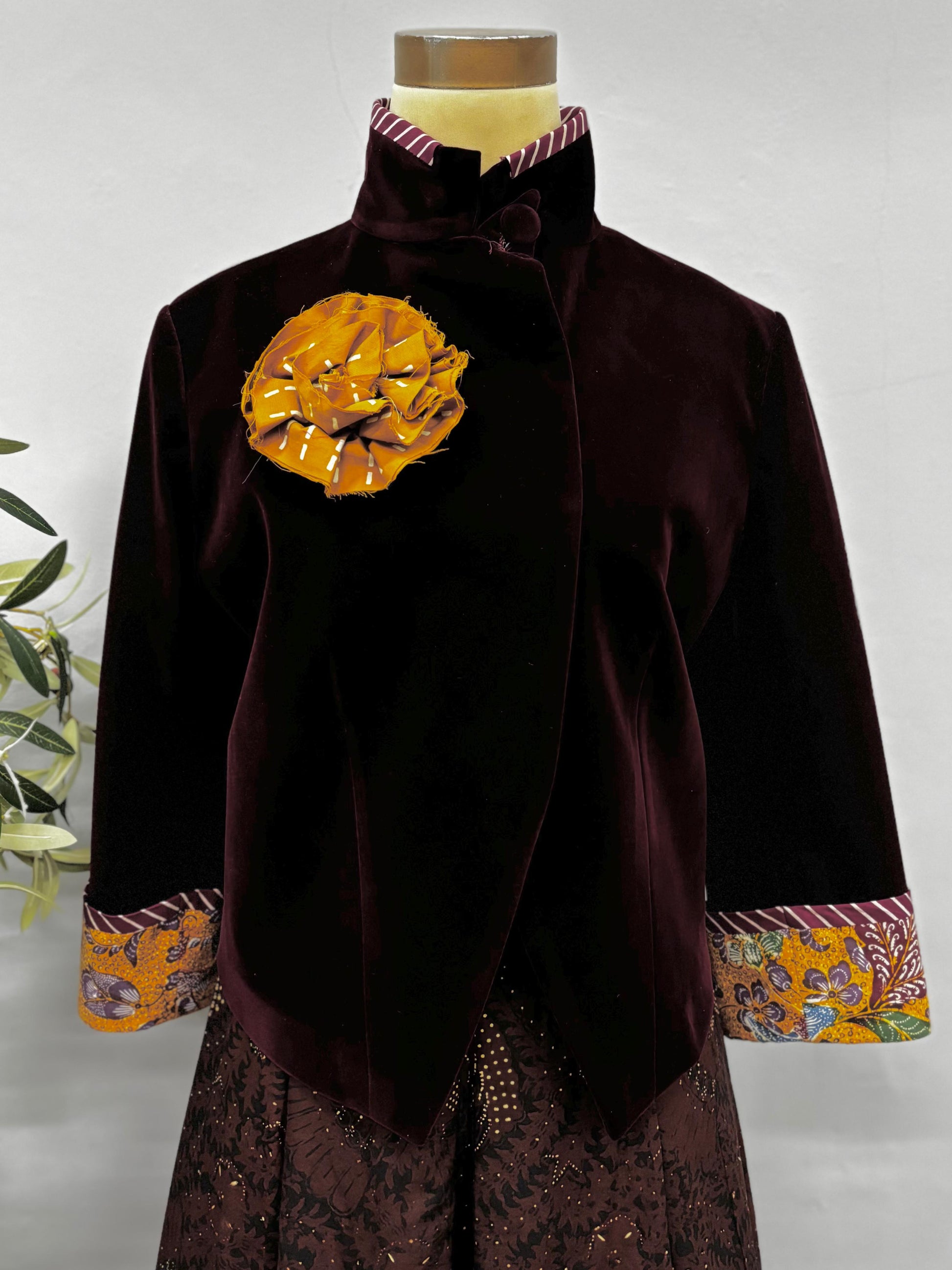 S / Maroon velvet with yellow 3 negri classic batik and maroon stripes batik accentAST92S