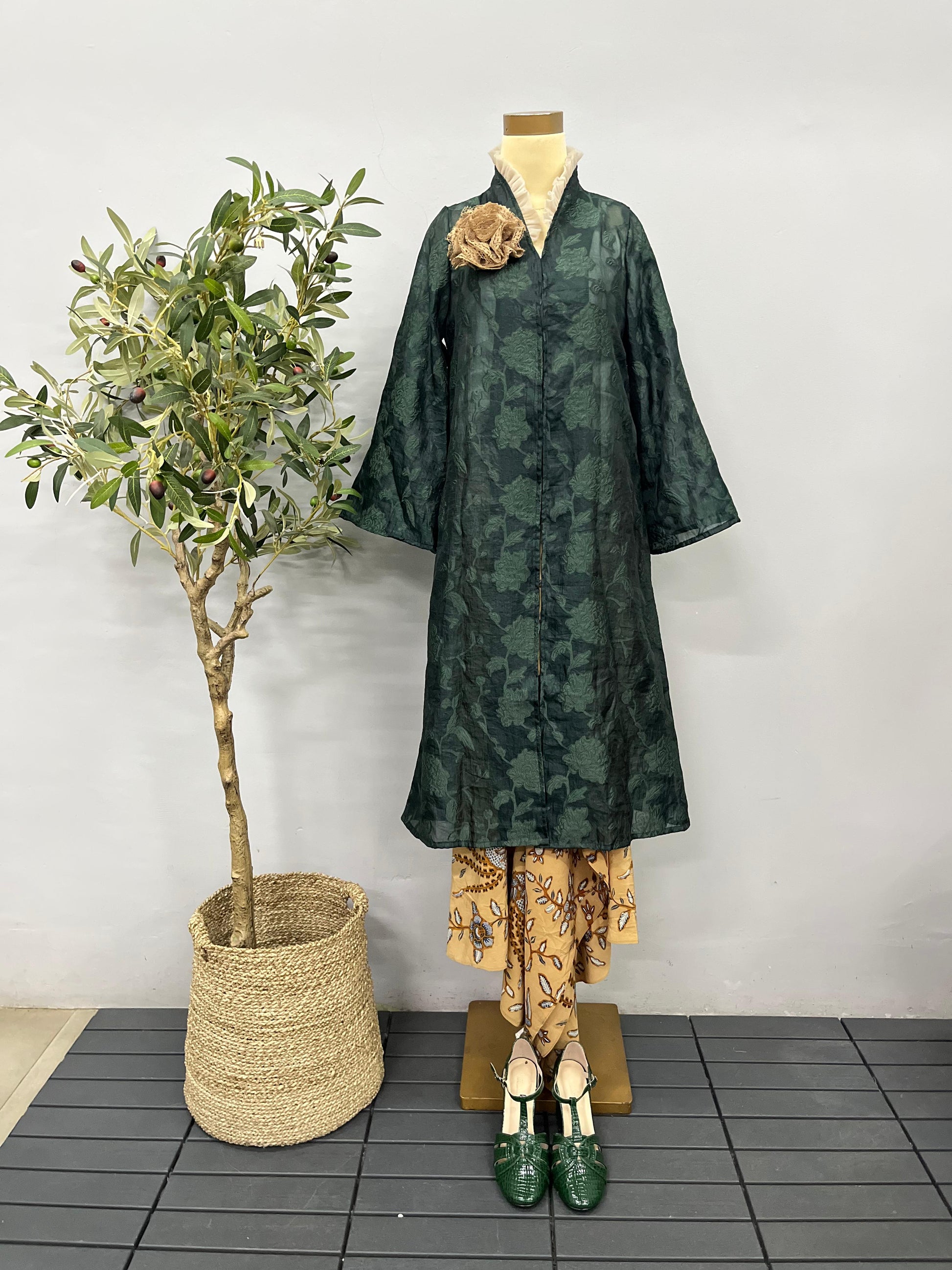 L / Broken white embroidery texture with broken white ruffles AIS31L