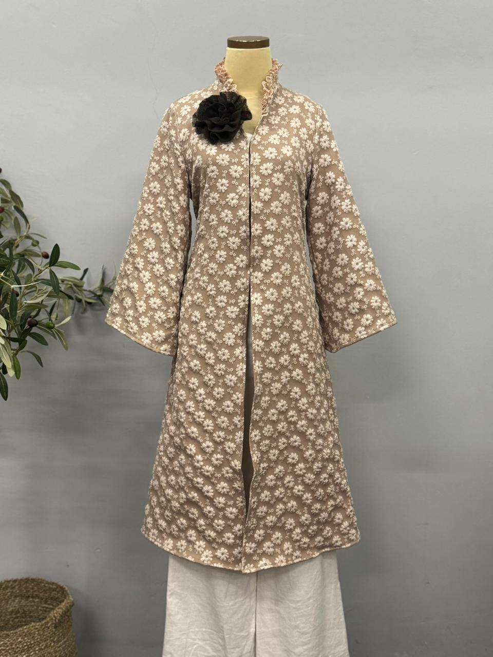 M / Beige flowers jacquard with beige ruffles accentAIS28M