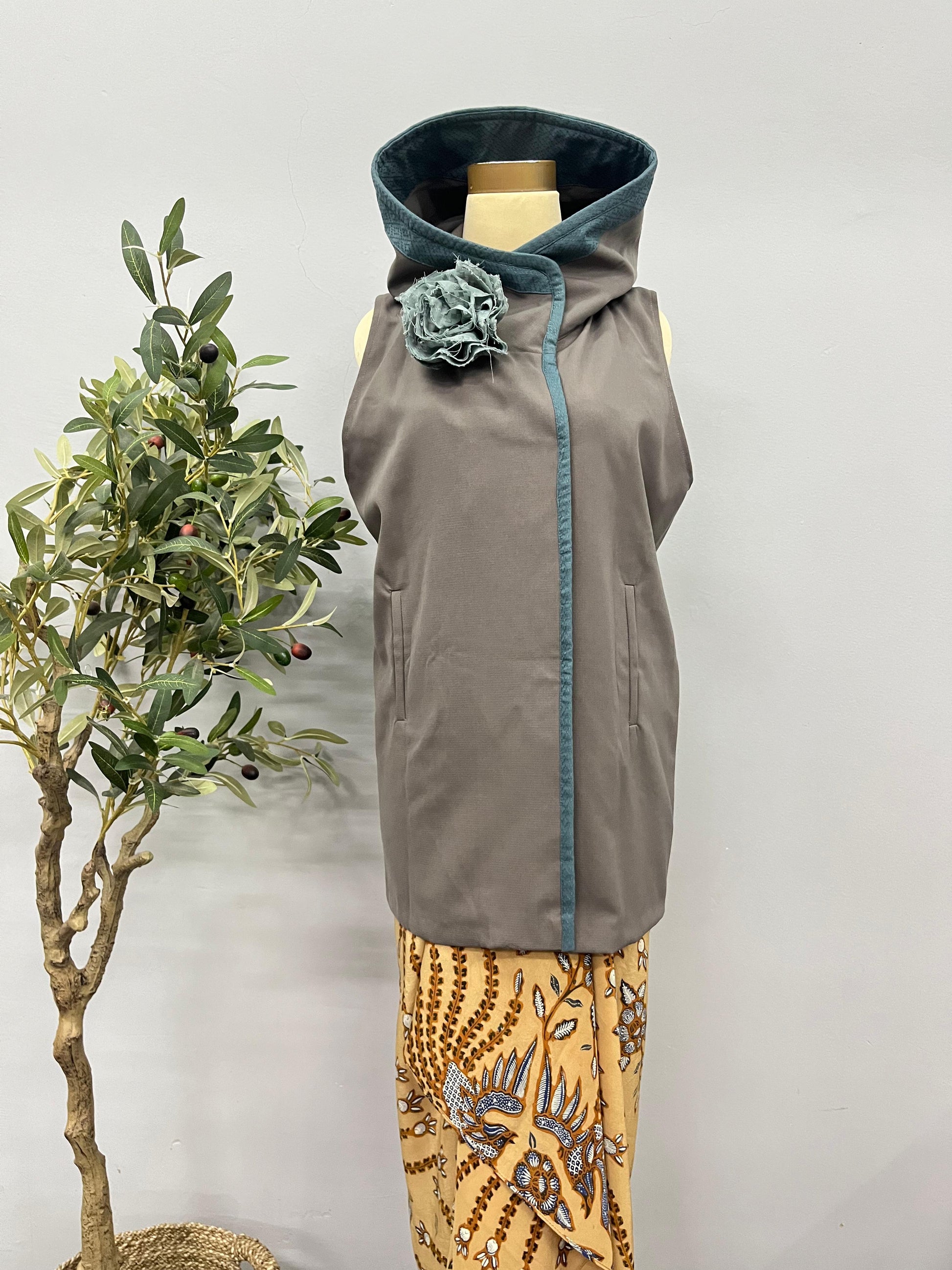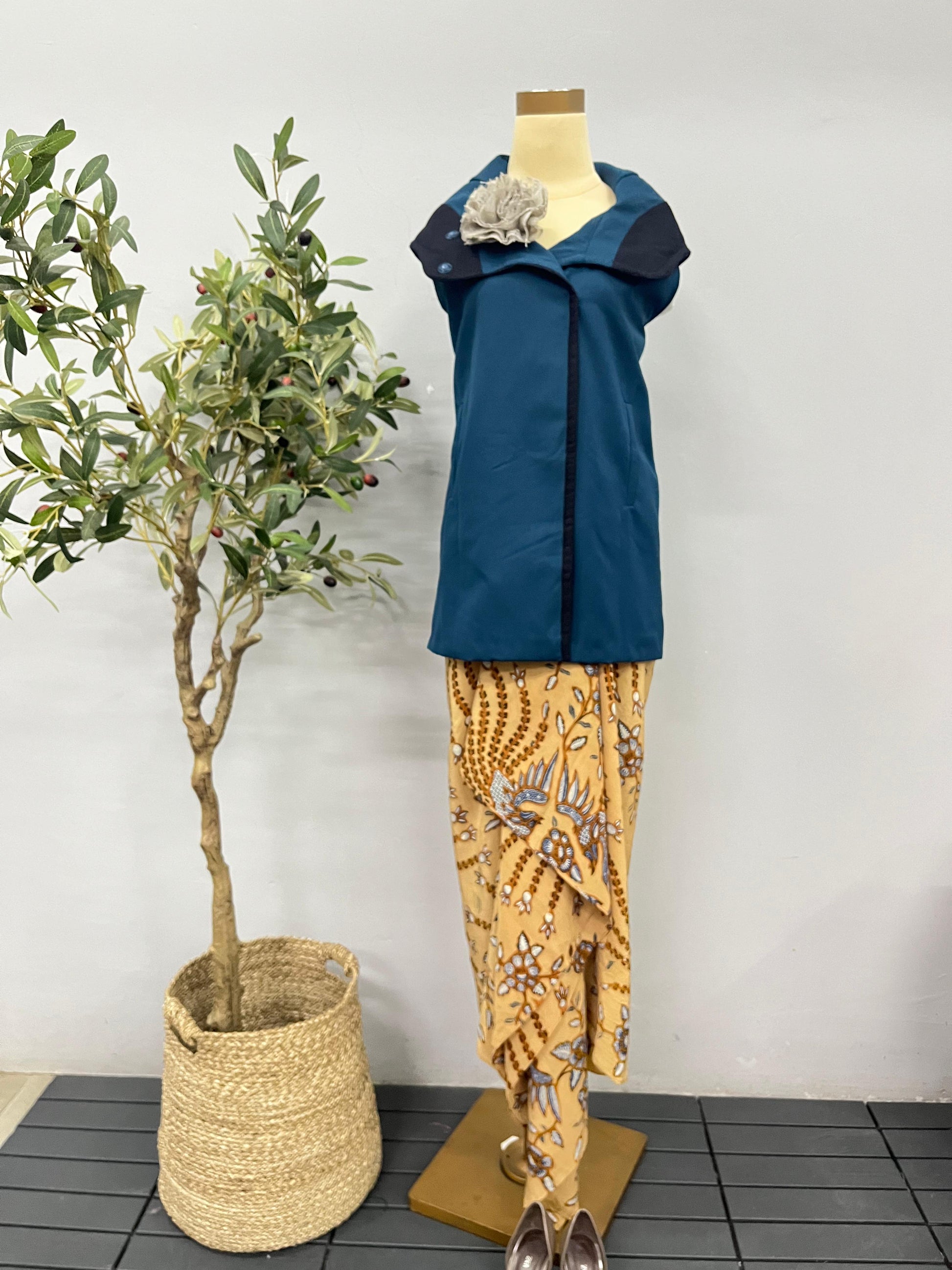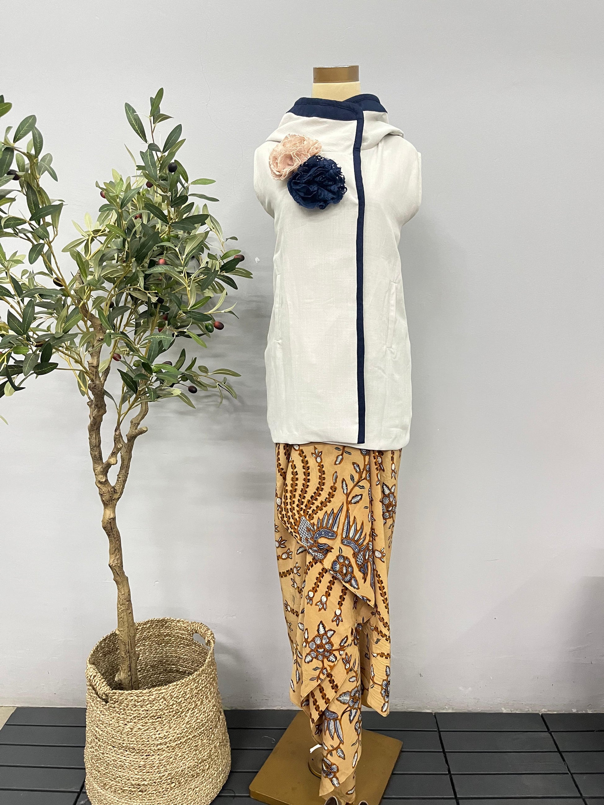 S (FS) / Plain beige with beige stripes lurik and blue doby accentKNR4S