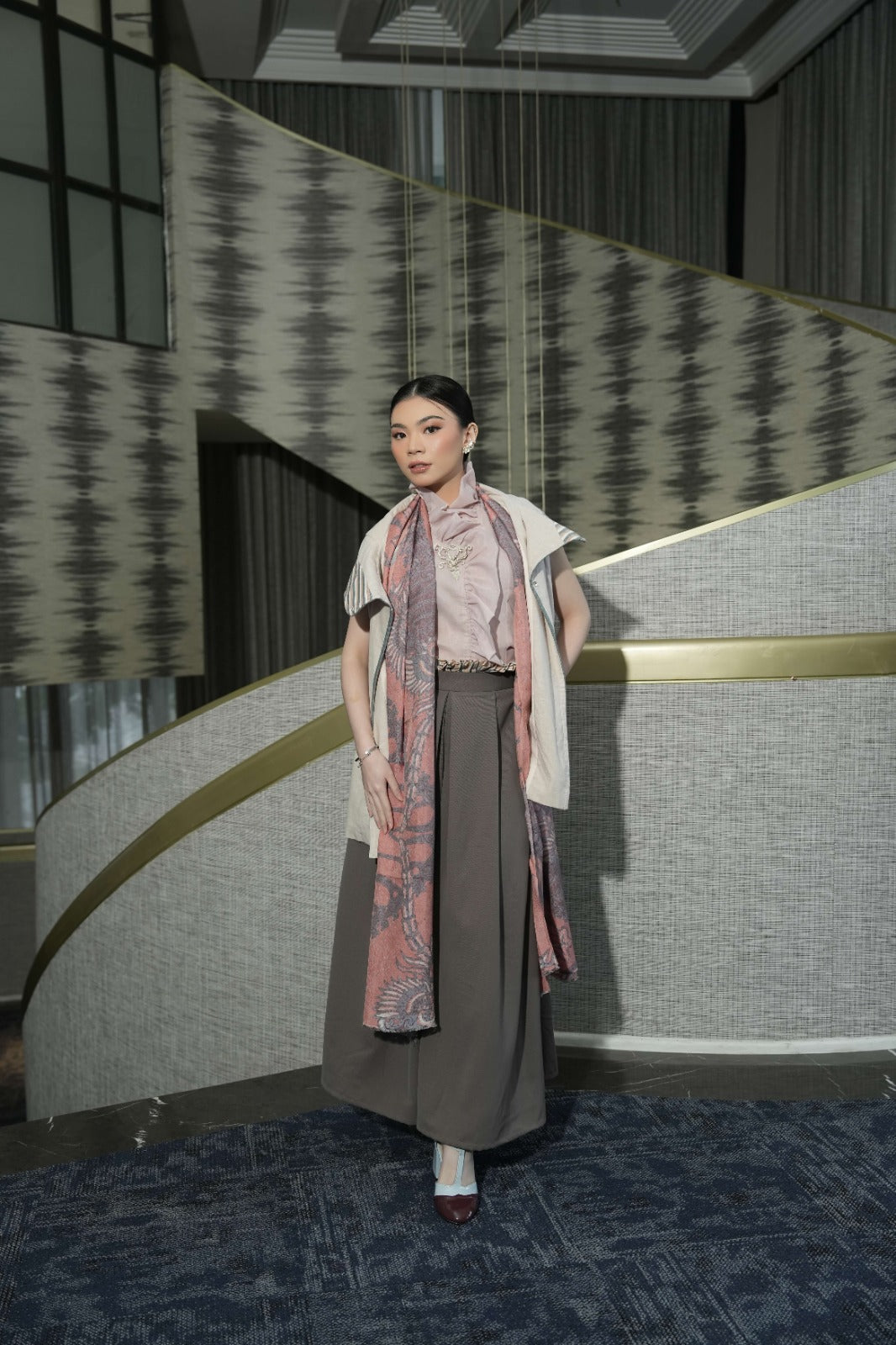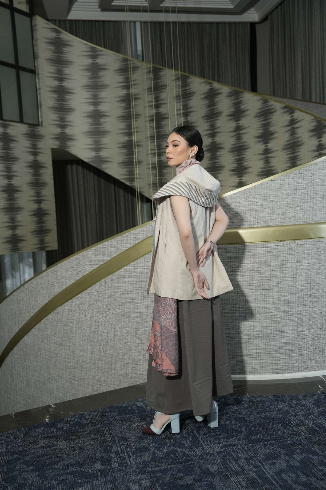 M (FS) / Plain beige with beige stripes lurik and blue doby accentKNR4M