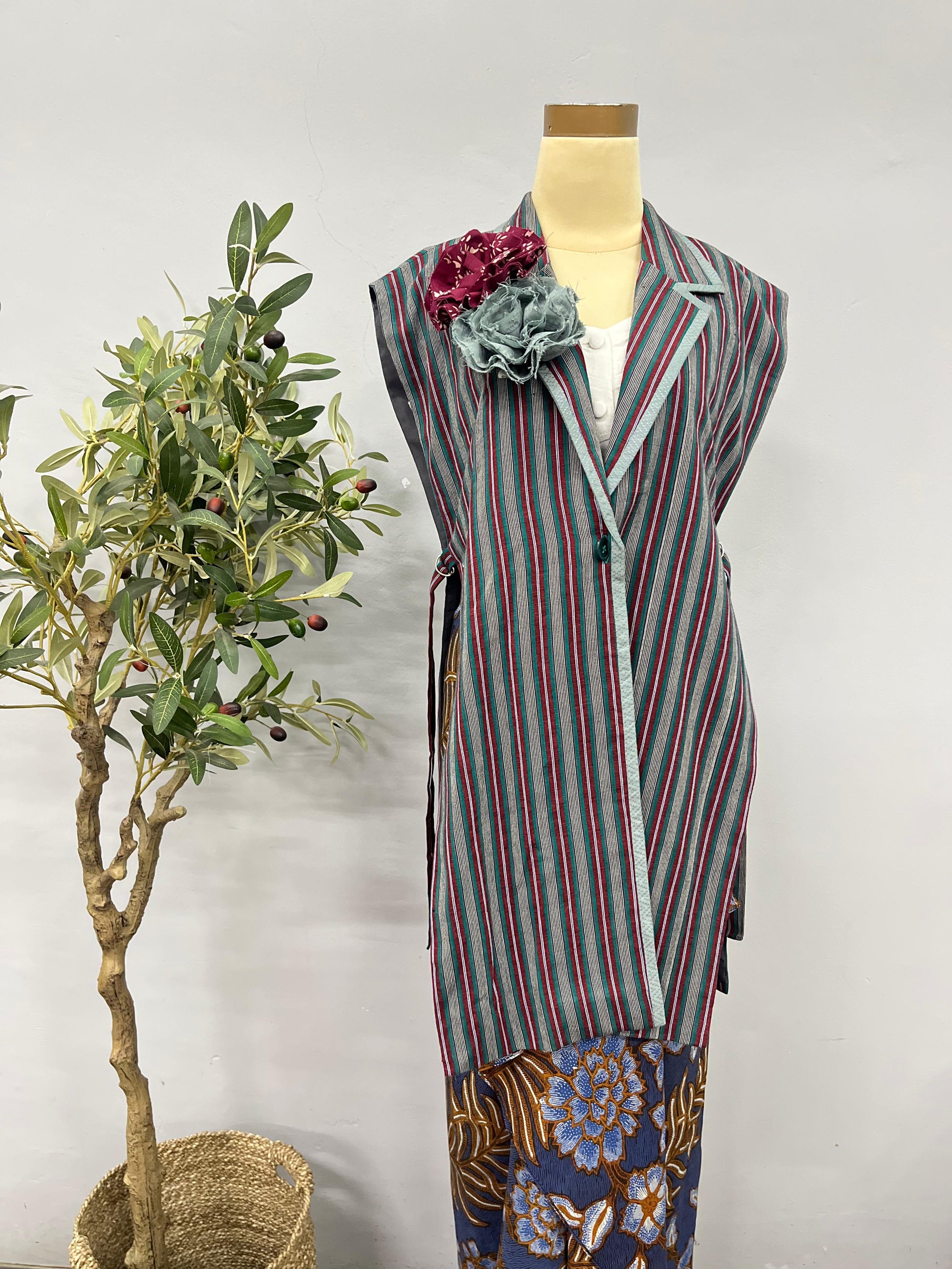 The outer vest is designed in a very unique way, the left and right parts can be adjusted, and added with a batik trim that will enhance your appearance.