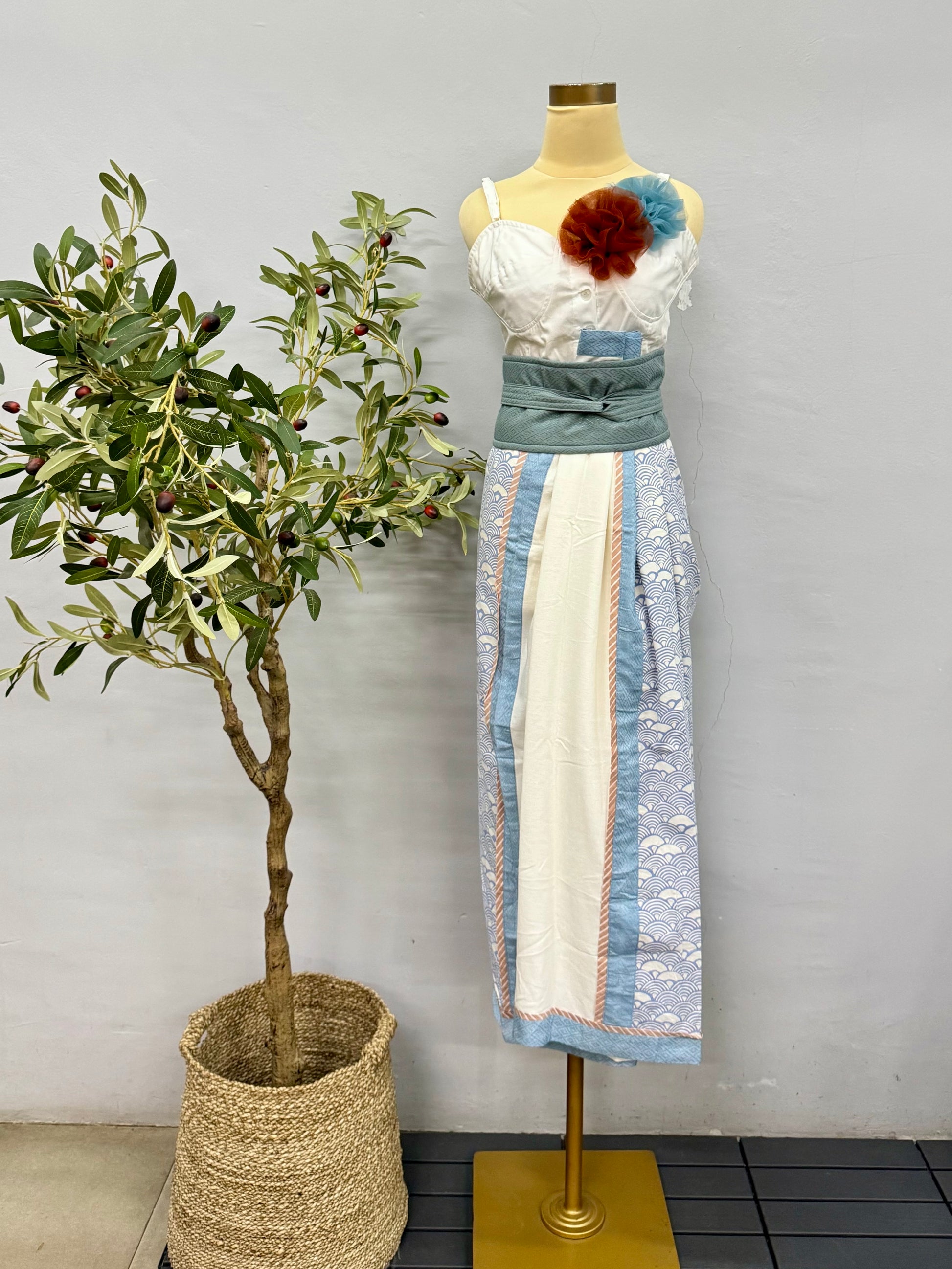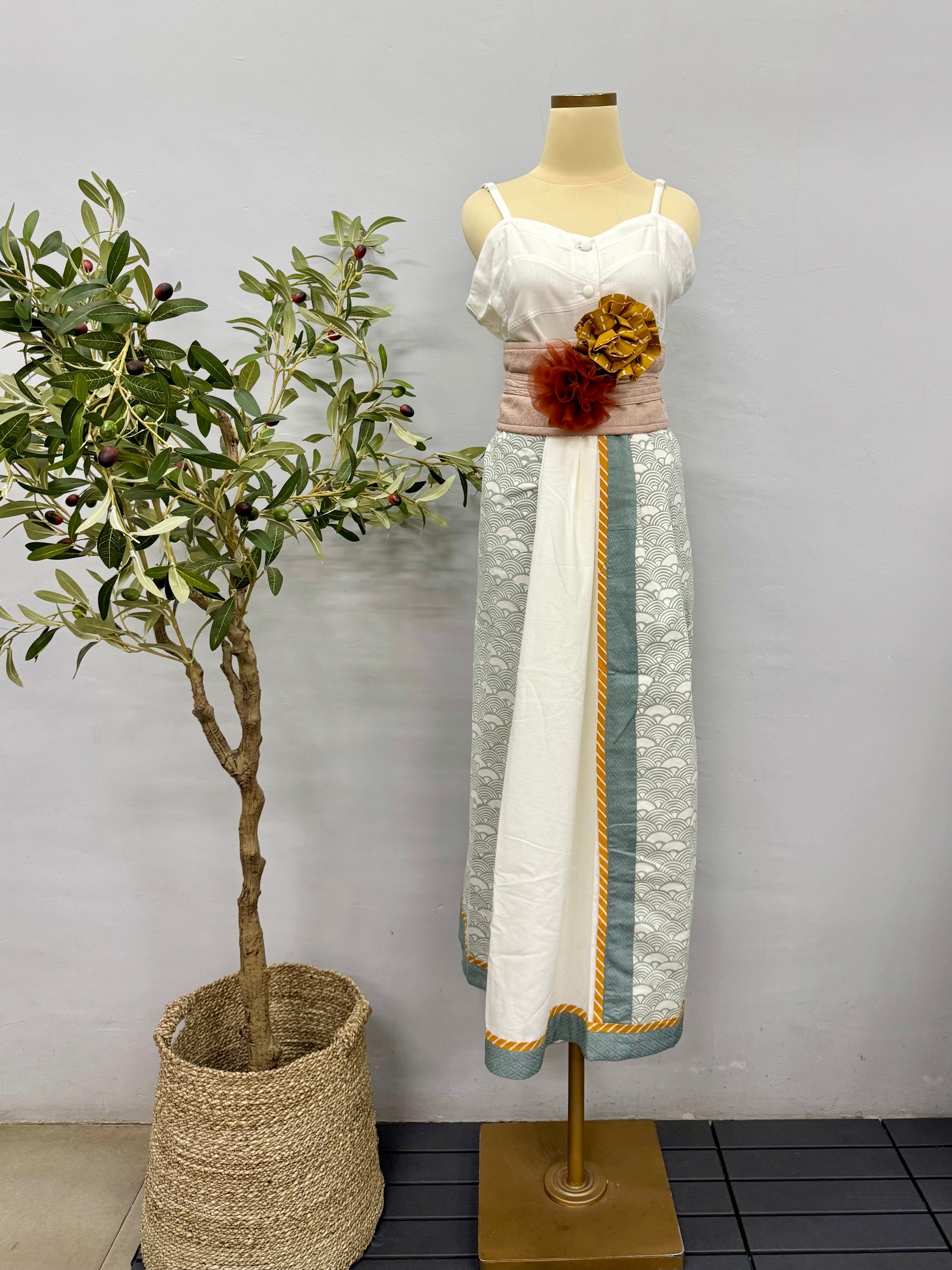Allsize / Sage wave batik and orange stripes batik with dusty blue tenun doby edge SB15
