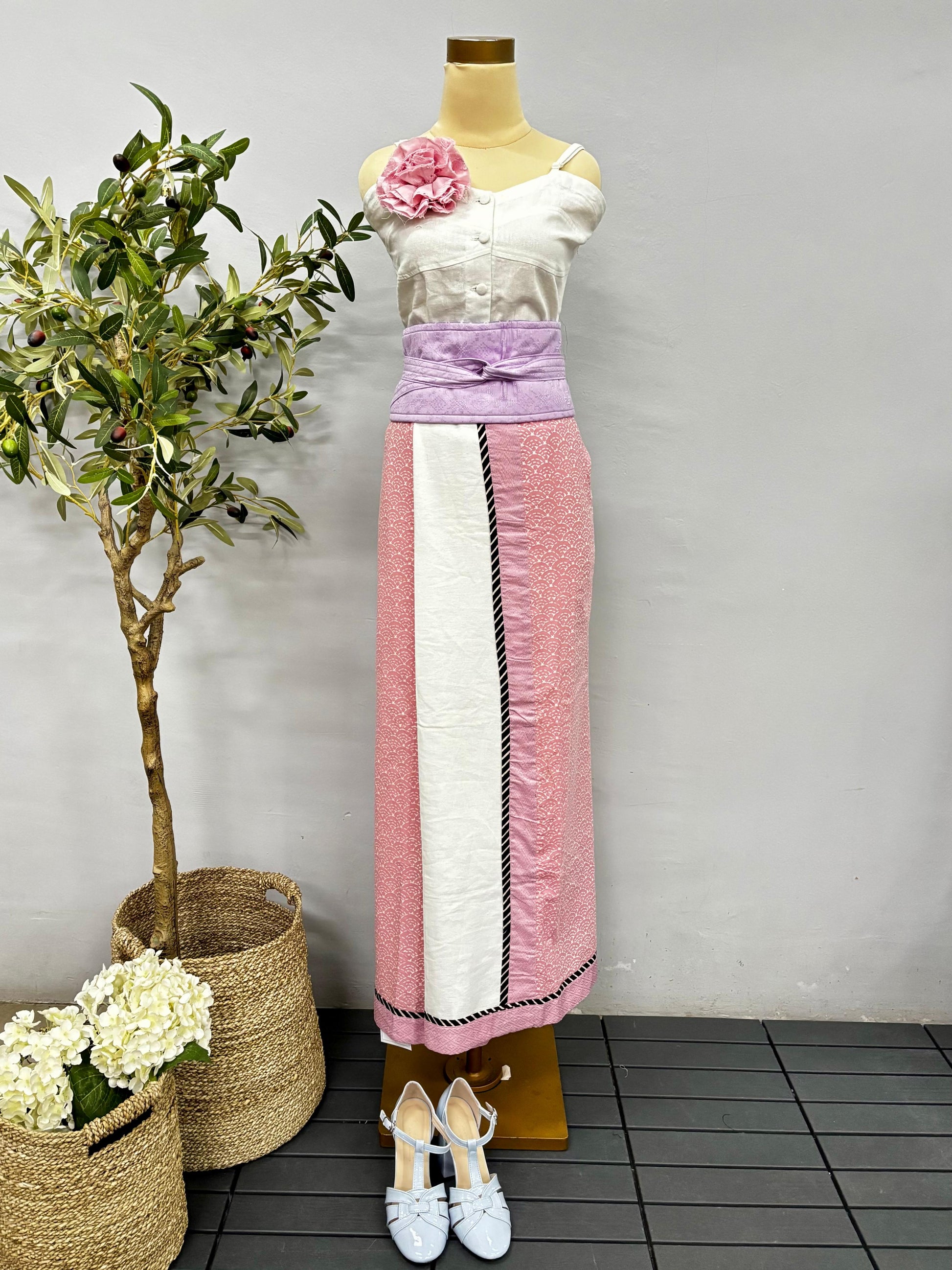 Allsize / Pink shell motive batik with broken white linen with pink tenun doby edge and brown stripes batik accent SB41