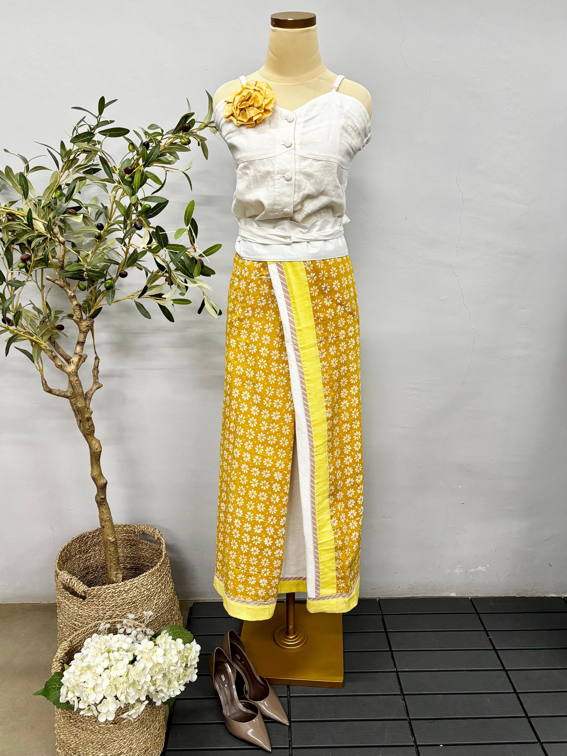 Allsize / Yellow flowers motive with plain white cotton and cream stripes batik and yellow tenun doby edge SB50